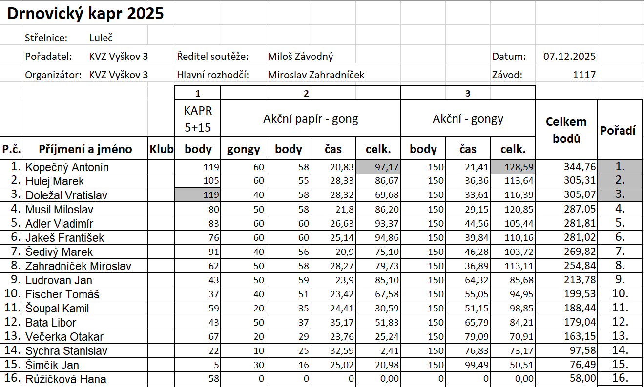 Střelecký víceboj jednotlivců. Propozice zde: Výsledky VPi zde: MPi zde: |
