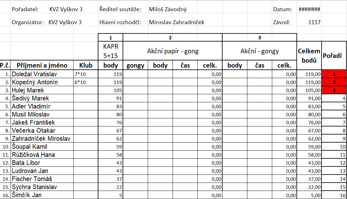MČR ČMP - souboje dvojic z MPu. Výsledky zde: |